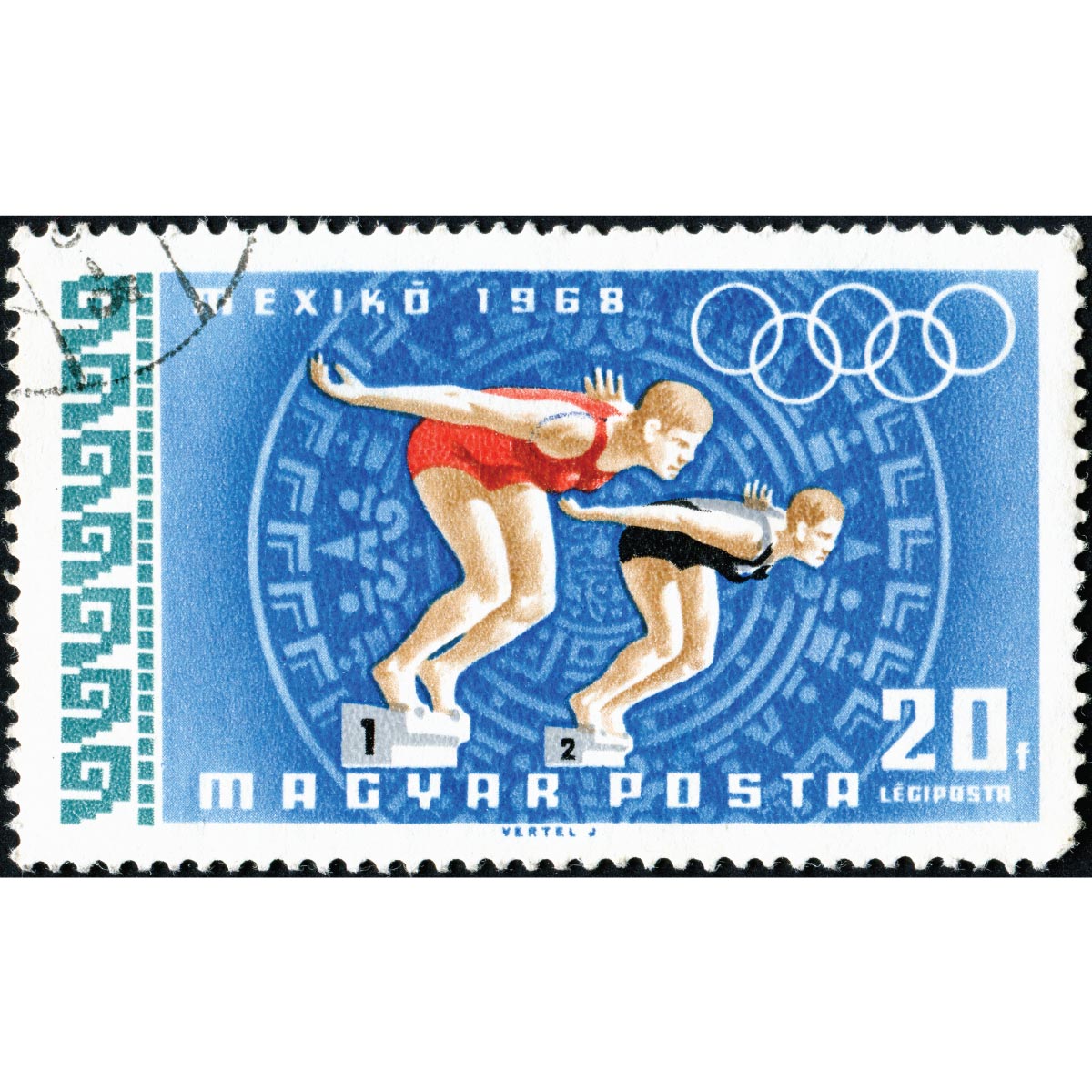 Get a unique piece to decor any space with this acrylic print of a postage stamp of the 1968 Olympic games