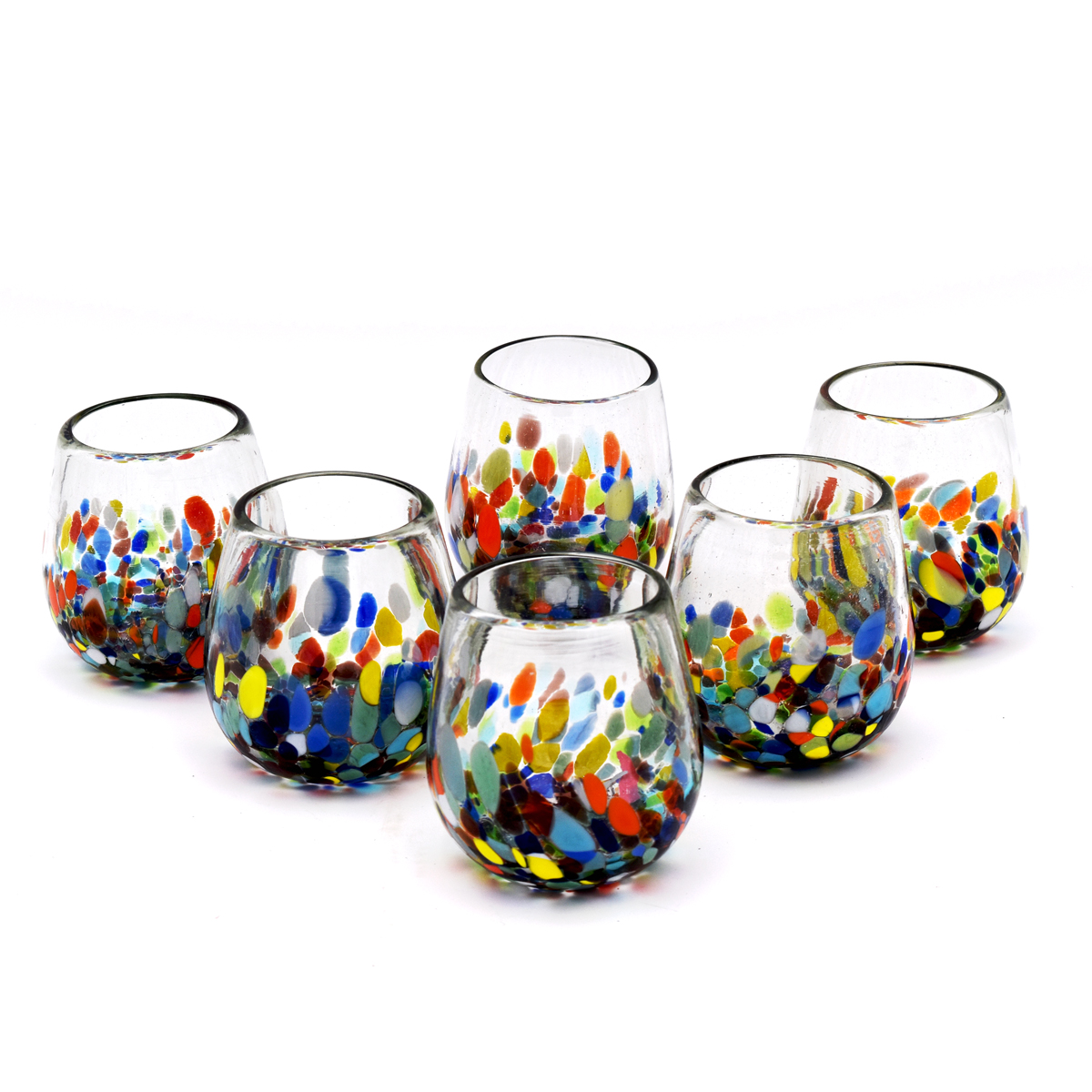 Handblown Confetti Festival Stemless Wine Glass
