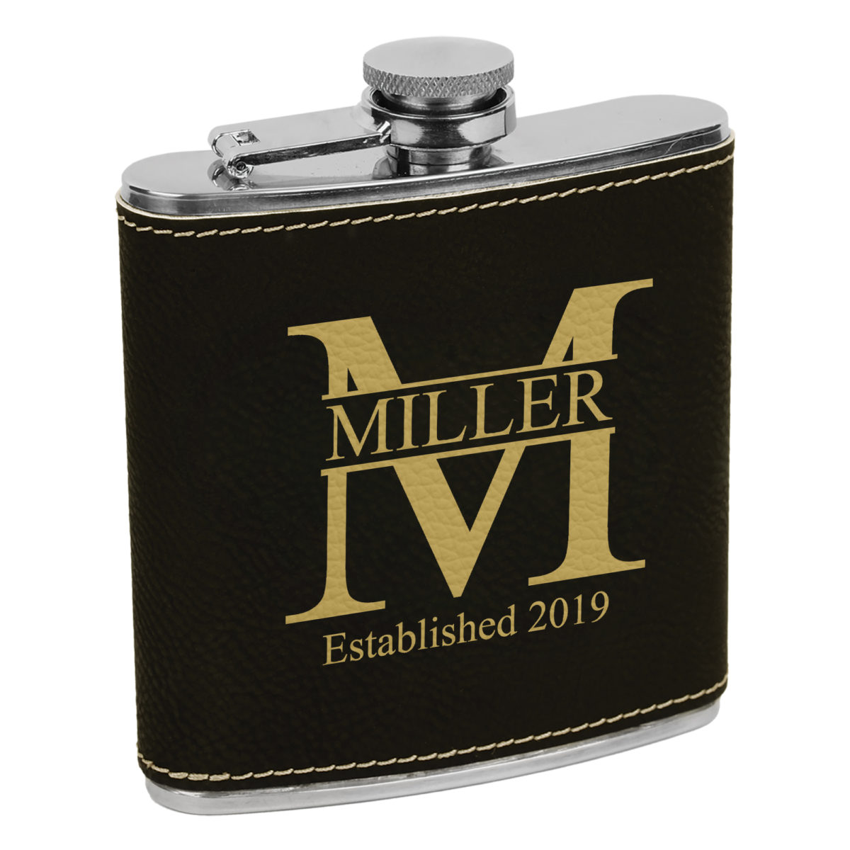 Personalized Leatherette Wrapped Stainless Steel Flask