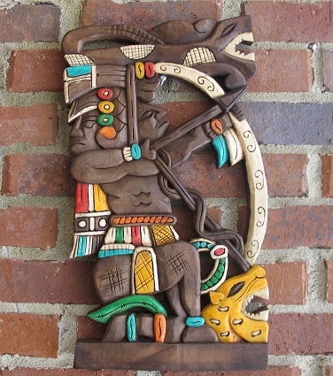 Bowman Maya carved with Kukul-Kaan (in Mayan means feathered serpent) and Jaguar Warrior.