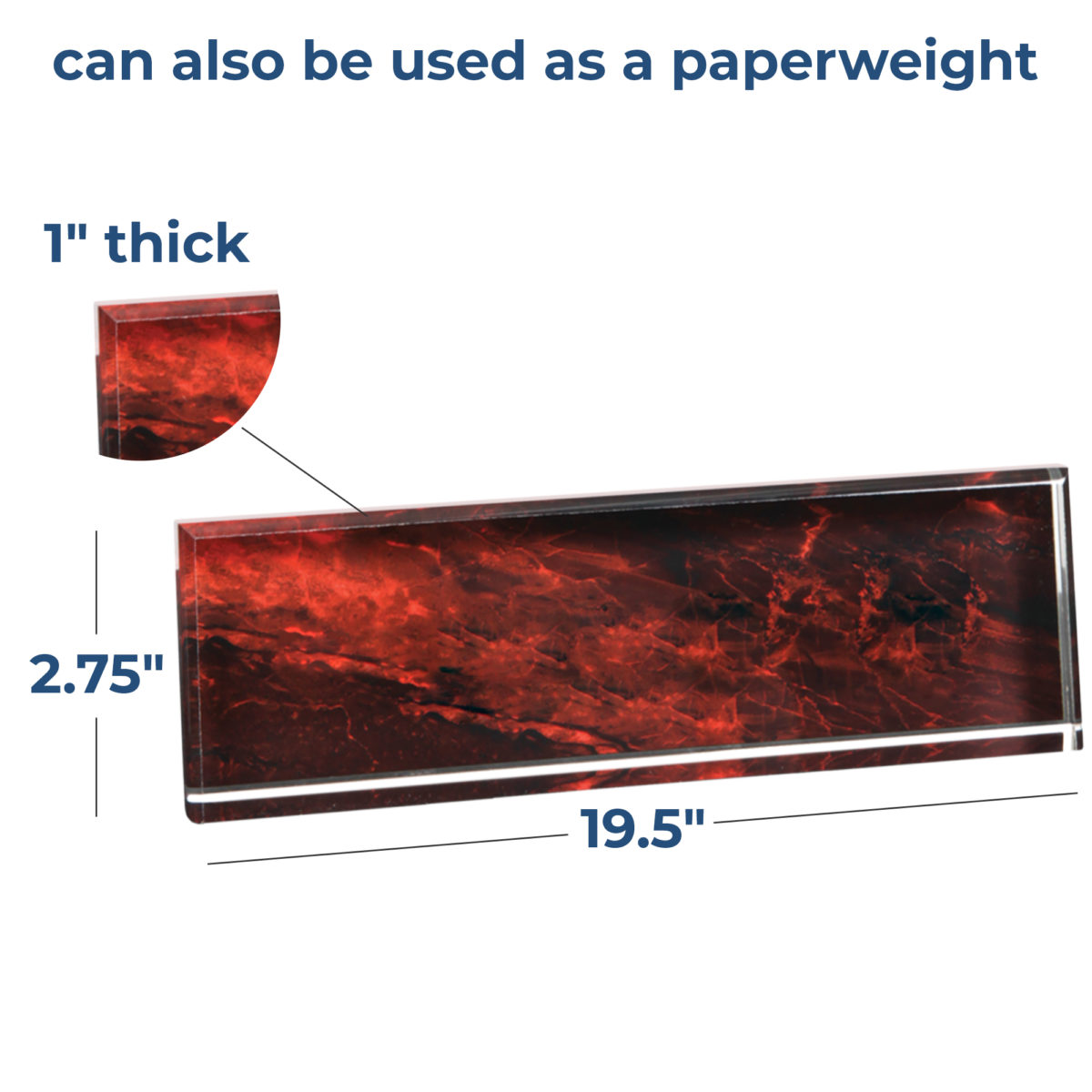 This simplistic yet elegant desk wedge has a 1/4″ bevel on its sides. This acrylic desk wedge makes a great luxurious gift for Doctors, Attorneys, Therapists, Accountants, and other professionals.