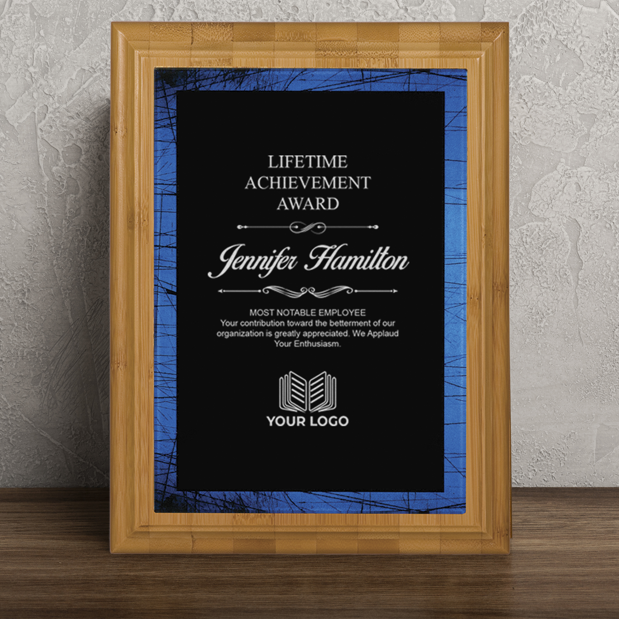 Customization options are available to make your Bamboo Award truly one-of-a-kind. Our expert engravers can skillfully etch personalized messages, logos, or names onto the bamboo surface, adding a touch of exclusivity and creating a lasting impression. Whether displayed in an office, boardroom, or personal space, this award will undoubtedly become a cherished symbol of recognition and achievement.