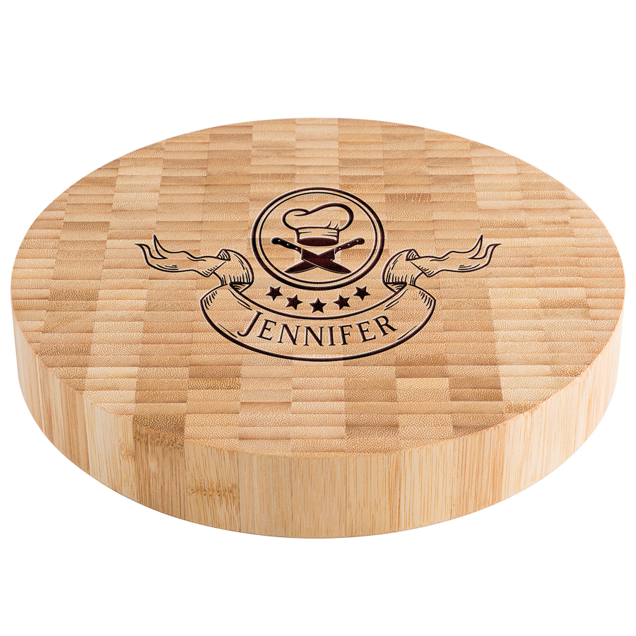 Personalized Chef Knife Bamboo Round Butcher Block Serving Board