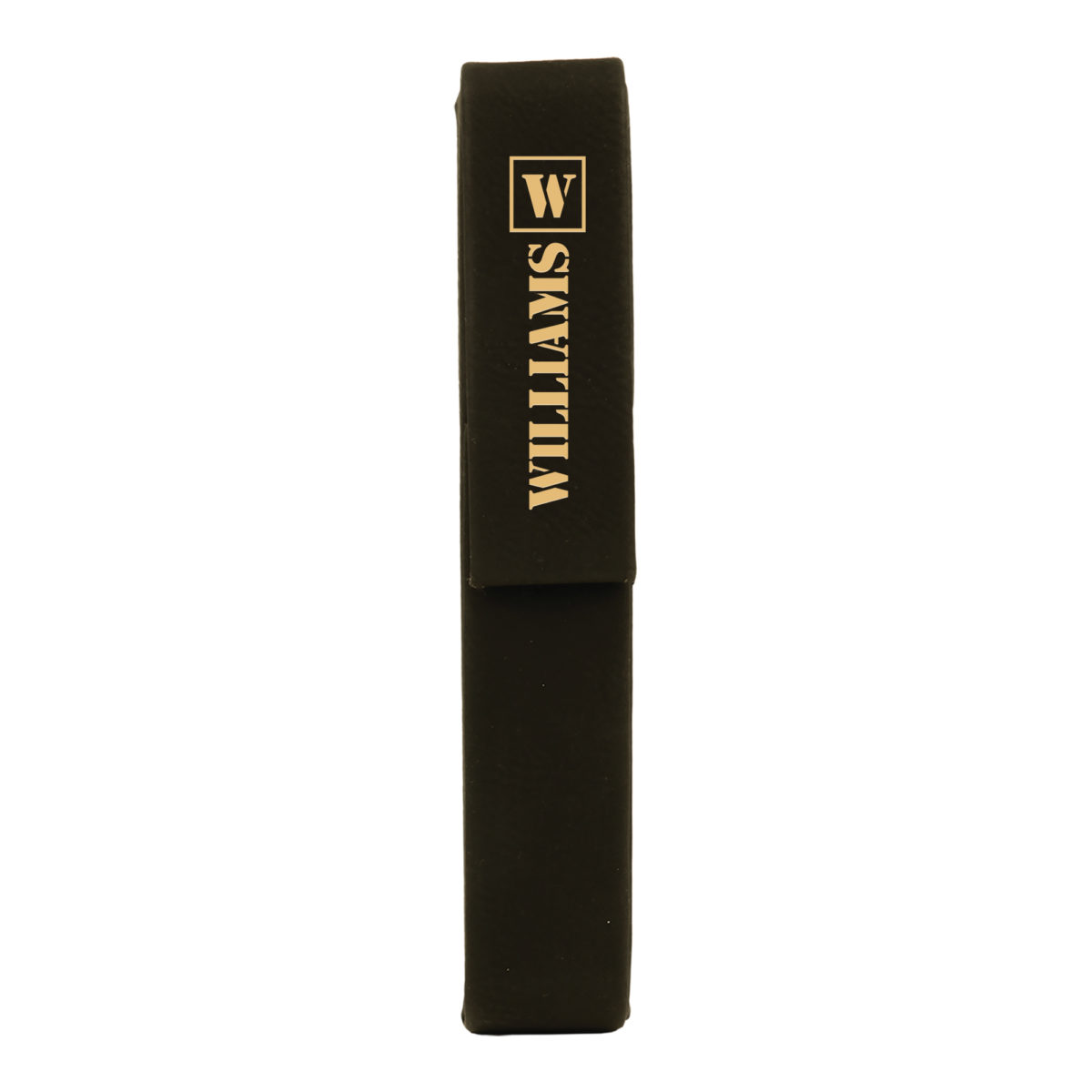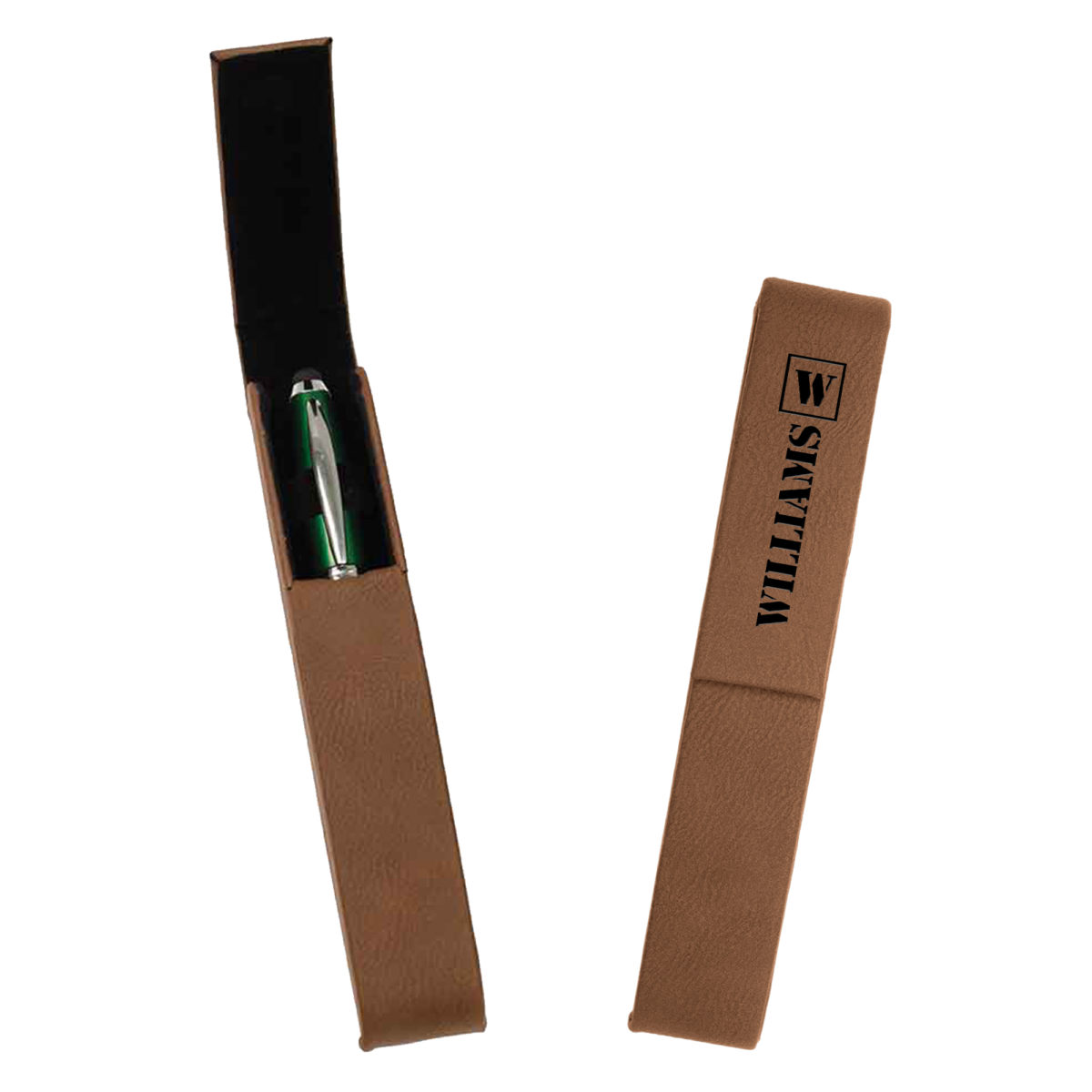Keep your favorite pen handy and secure with this faux leather pen sleeve. Its compact size makes it perfect to carry inside a coat pocket or portfolio. Sleek minimalistic design with a sophisticated touch a custom-made laser engraving.