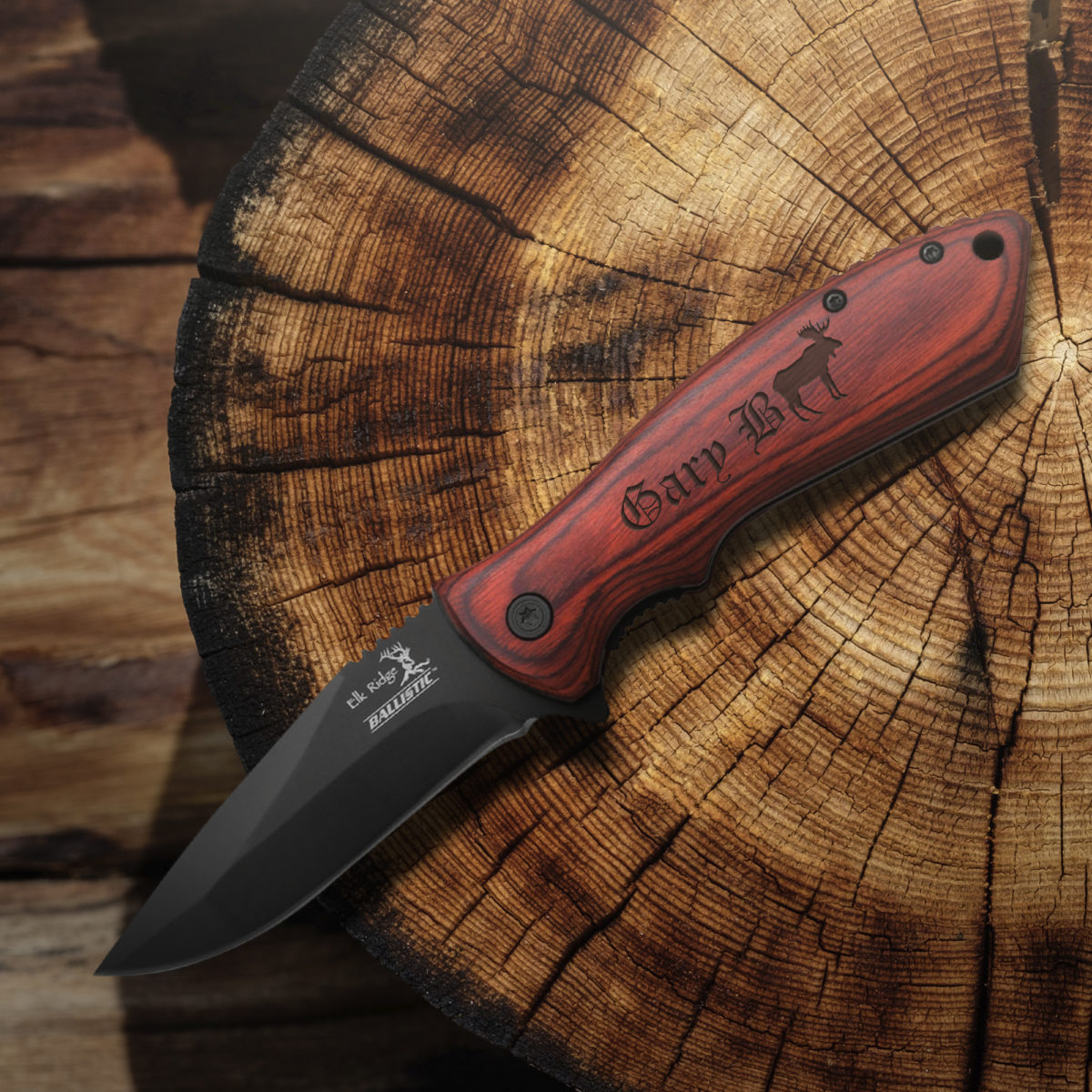 Personalized 7.75″ Spring Assisted Folding Knife with Wood Handle
