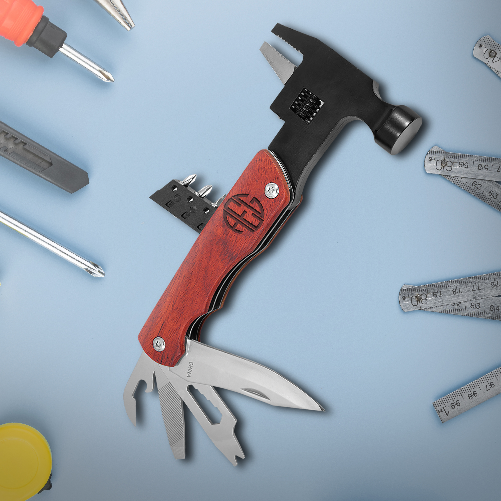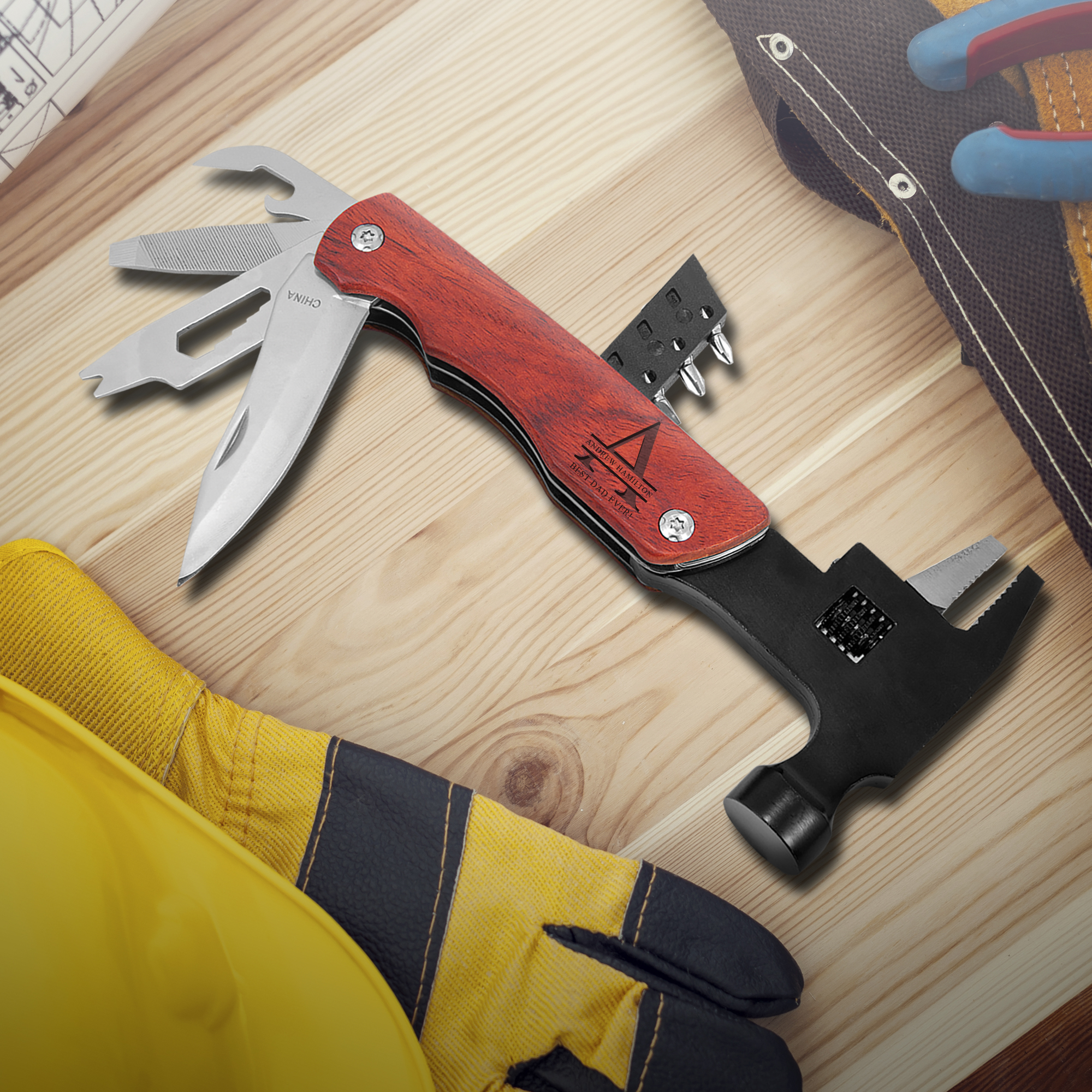 Personalized Hammer Multi-Tool with Wood Handle