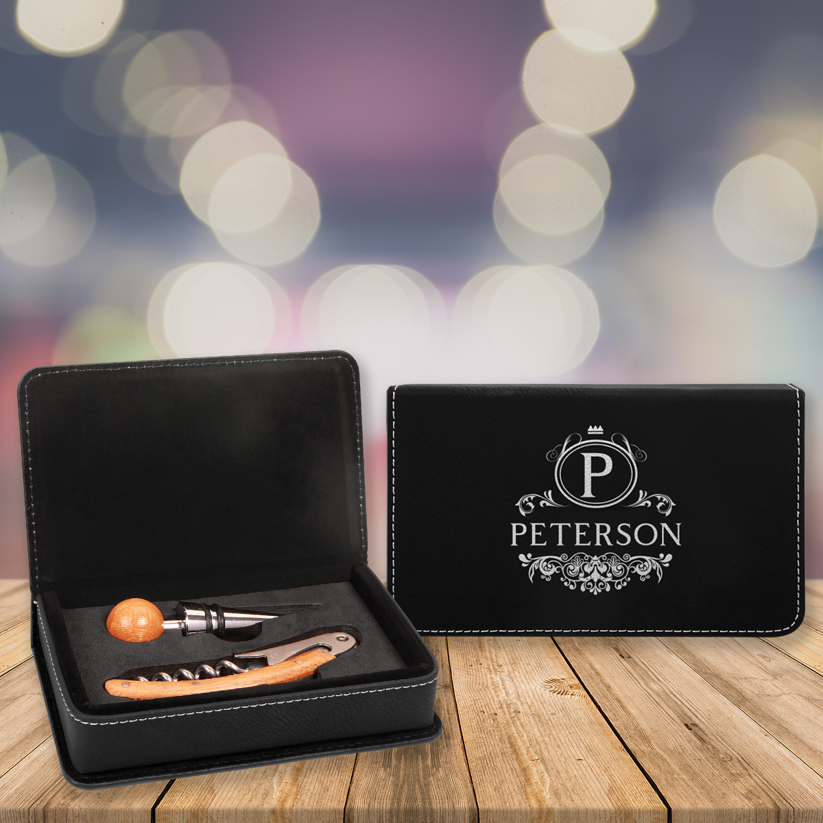 Surprise the wine connoisseur in your life with a PERFECT gift! This personalized 2 piece wine tool set contains all the essential tools necessary to open and store a bottle of wine! Its compact and travel size makes it perfect for picnics, days at the beach, or just for Saturdays spent outdoors. This dazzling wine tool set is sure to astonish your bridal party with bridesmaid and groomsmen!