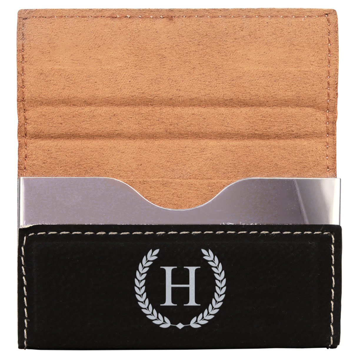 Always have clean business cards available with this personalized leatherette business cardholder. This faux leather material is both durable and beautiful. Its precise laser engraving makes this a beautiful gift for entrepreneurs or professionals.