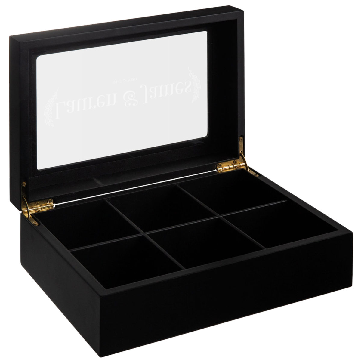 Personalized Black Wood 6 Compartment Tea Chest w/ Window