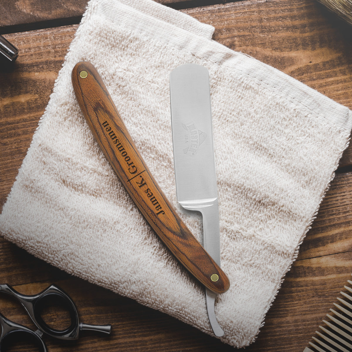 The perfect gift for any man and any occasion. Groomsmen or best man, father’s day, anniversary, or graduation, this personalized stainless steel straight razor with wood handle is a great keepsake. Add a custom-made engraving with a personalized message or monogram. This elegant straight razor can be kept as a souvenir or used daily, its stainless steel blade and wood handle are built to last.