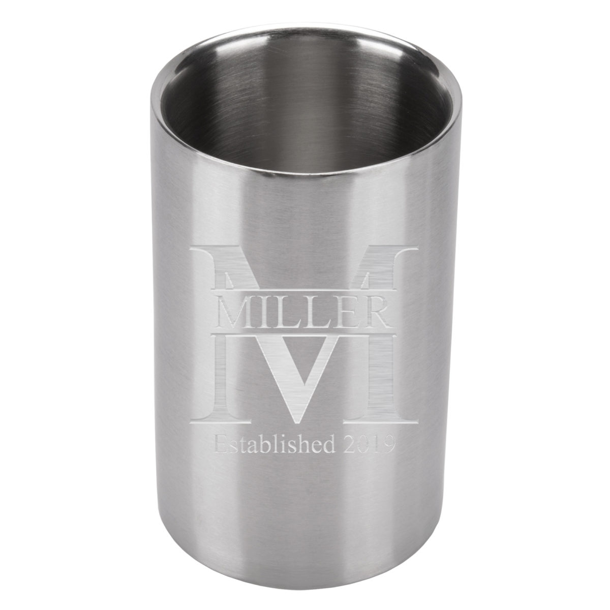This Custom Engraved Insulated Stainless Steel Wine Bucket is the perfect gift for wedding anniversaries, housewarmings, weddings, or engagements. Made from solid stainless steel this wine chiller can maintain cool temperatures for up to 4 hours and fits most standard wine and champagne bottles. This personalized wine bucket boasts a custom-made engraving that is extremely durable.