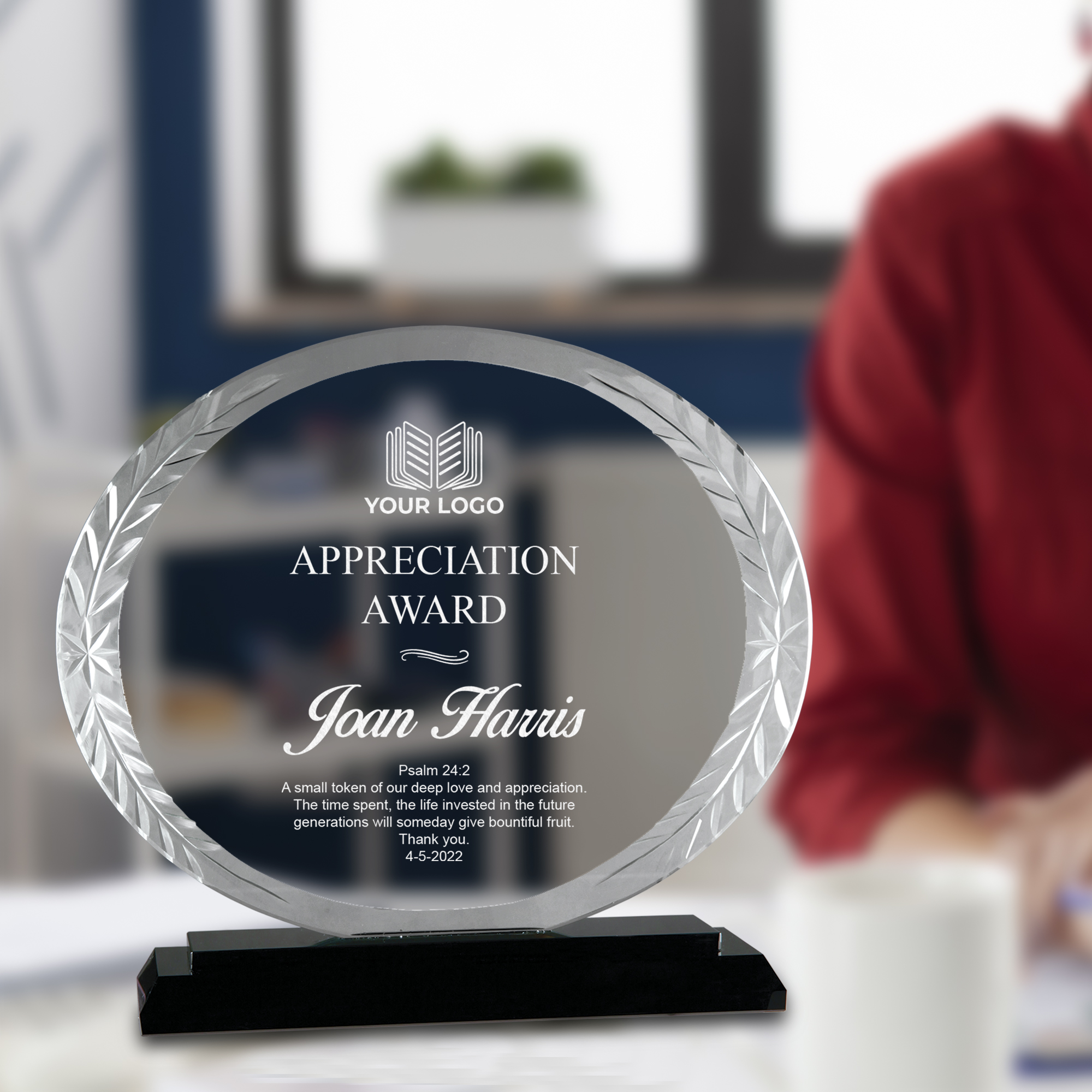 - Personalize the award with your choice of text and logo.