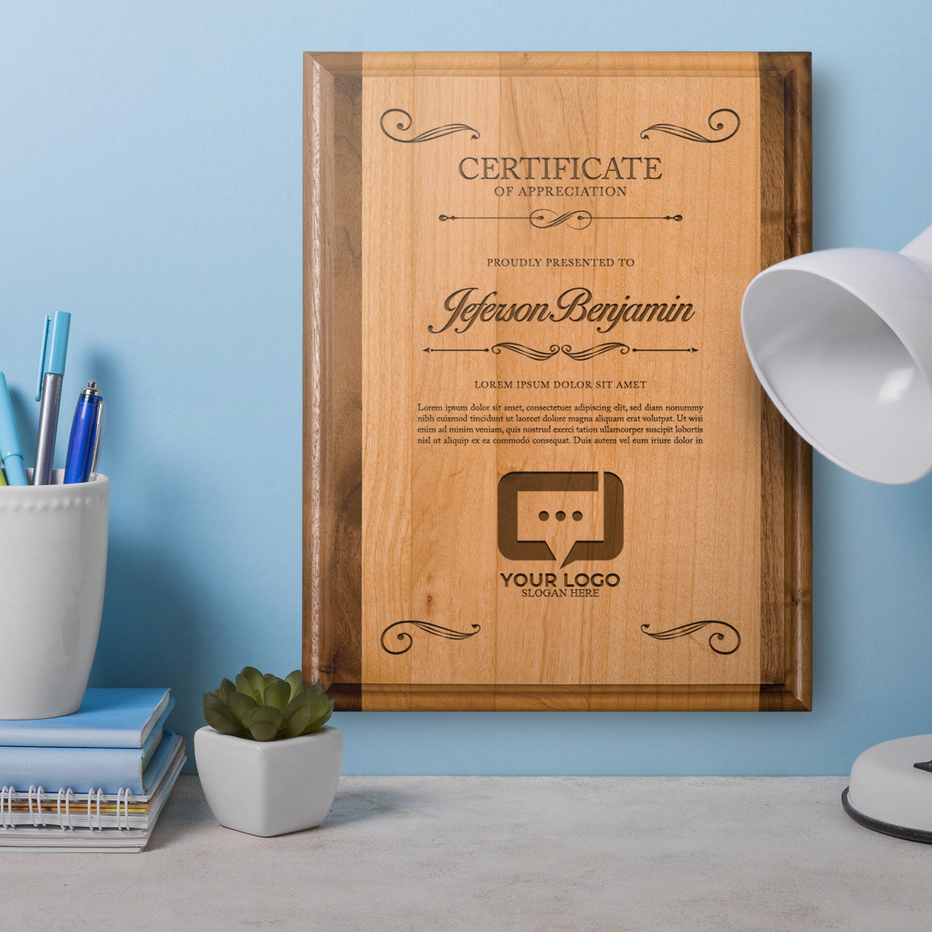 - Personalize the award with your choice of text and logo.