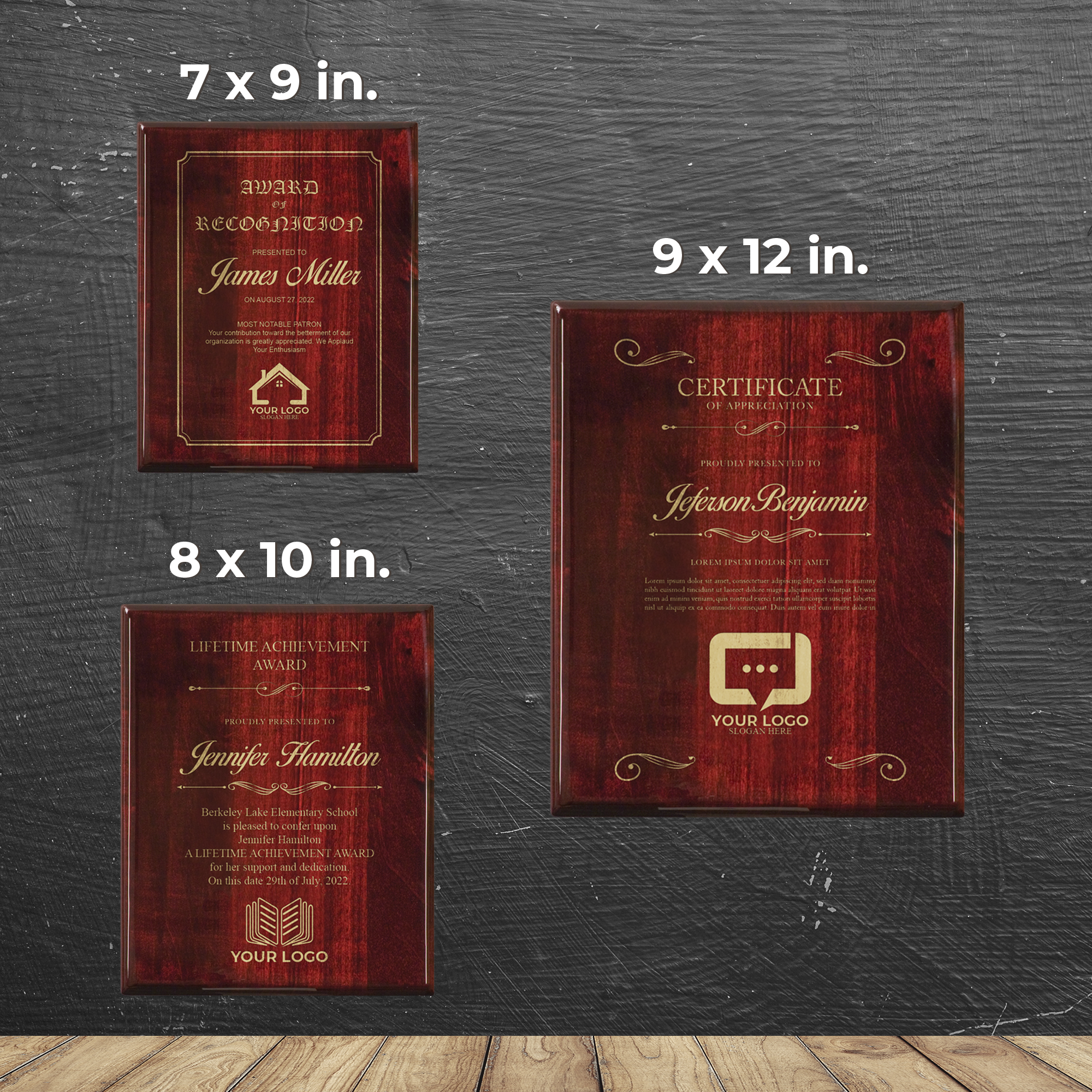 - Personalize the award with your choice of text and logo.