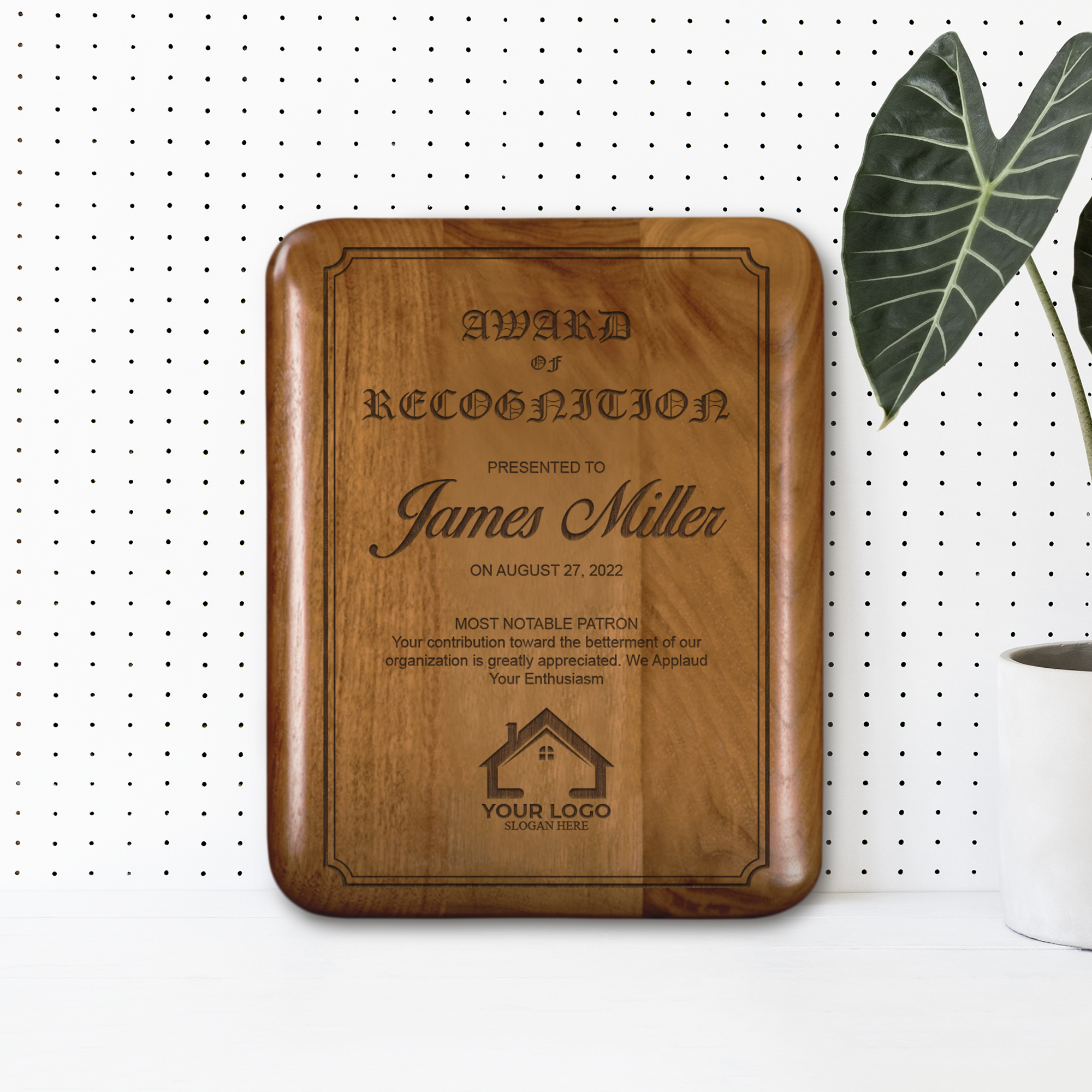 - Personalize the award with your choice of text and logo.