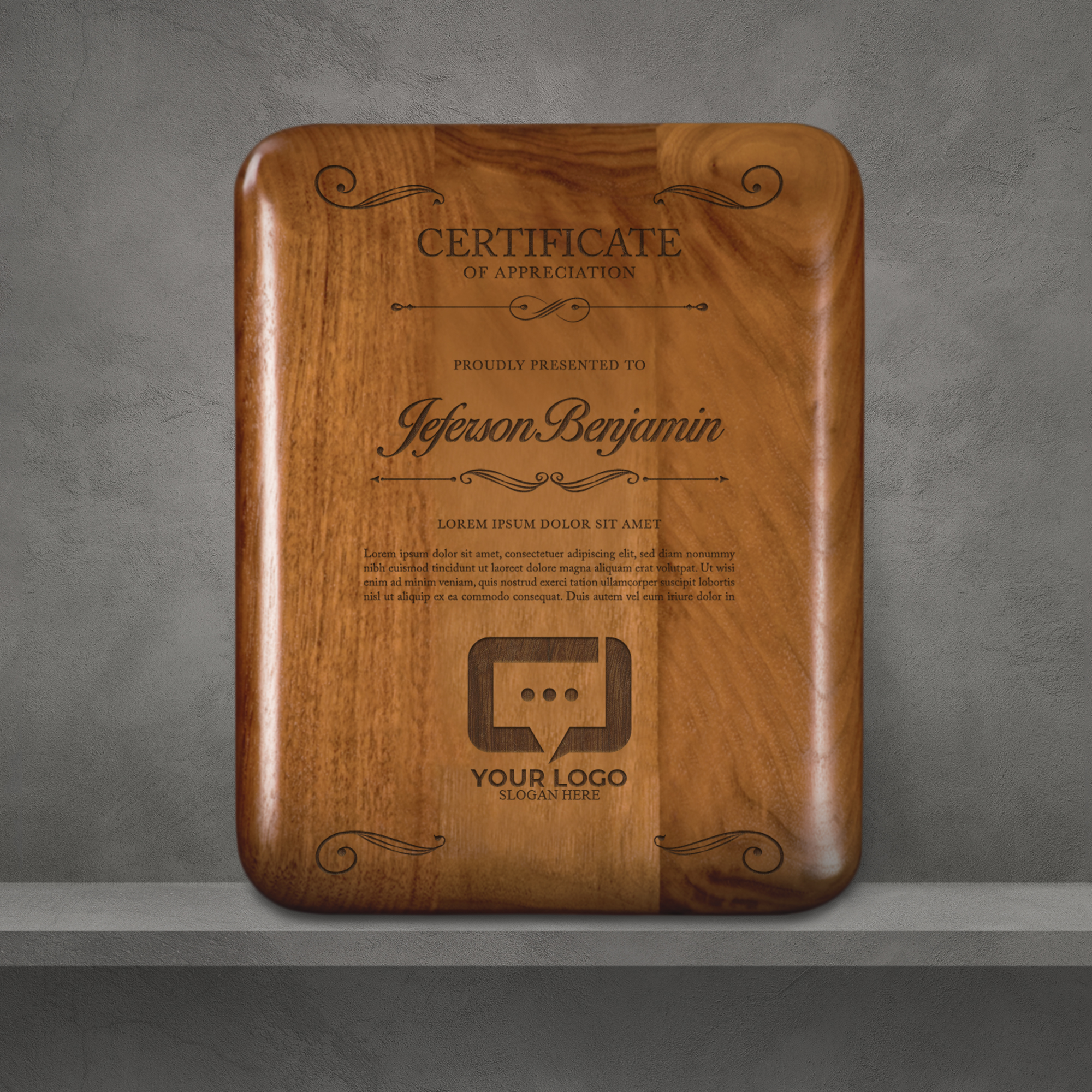 The perfect recognition award for employee of the year, work anniversary awards and for employee achievement awards. Our Round Corner Walnut plaques are an elegant choice for honoring achievement, recognizing milestones, and offering gift awards. The style makes this plaque perfect for any occasion and the cherry wood finish looks fantastic on any desk or office wall. Our friendly design team works with each customer to bring their vision to life in a proof before we start our production process so you can rest assured that your plaque is going to be exactly right when it arrives at your door.