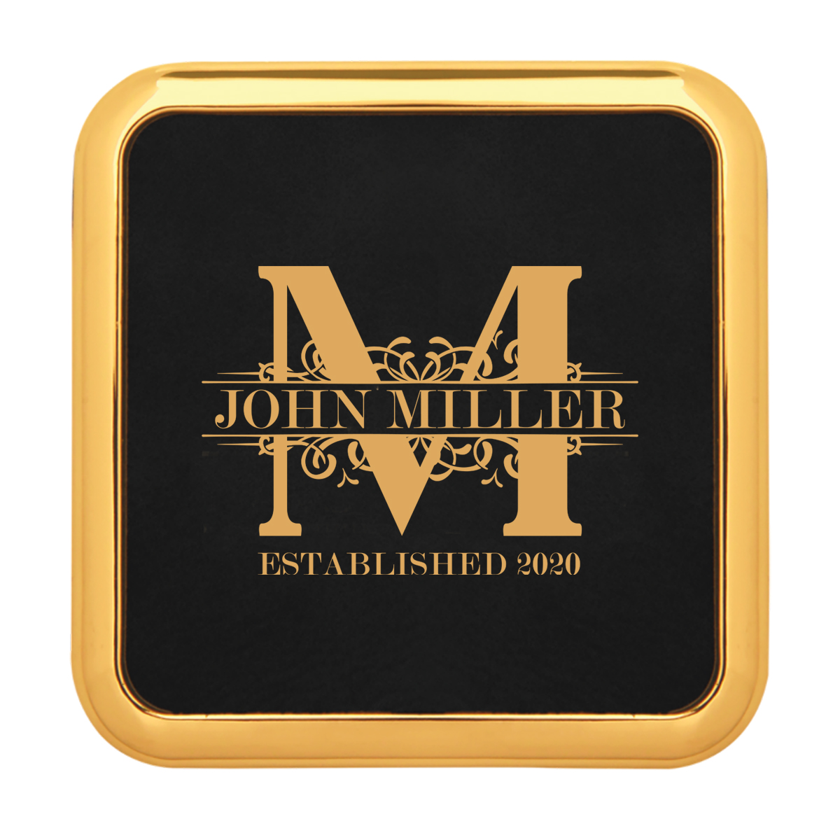 Personalized Square Leatherette Coaster w/ Gold or Silver Edge Set of 4