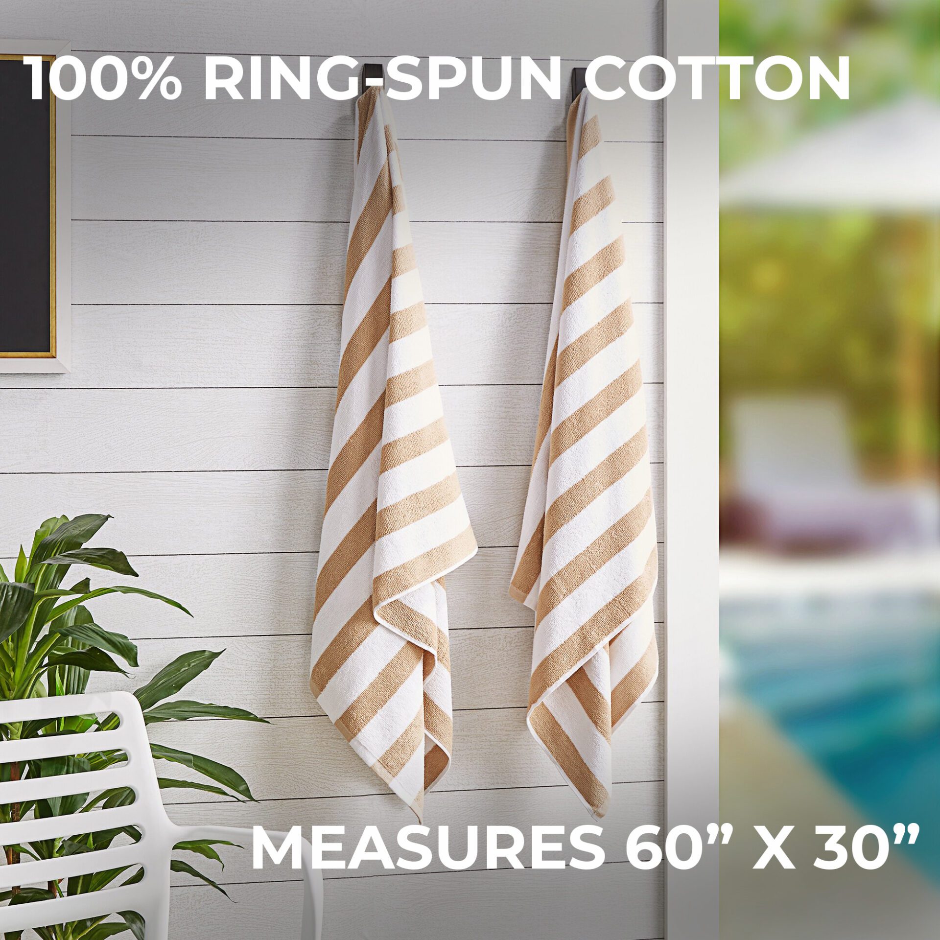 Our Custom Embroidered Cabbana Cotton Beach Towel offers a soft touch that soaks up water and feels great on the skin. It has been yarn-dyed to minimize fading from sun damage over time so that it retains its vibrant color. Plus, its Cabana-stripe design offers a classic look. This towel is perfect for use at resorts, hotels, and rental properties or as a bridesmaids gift!