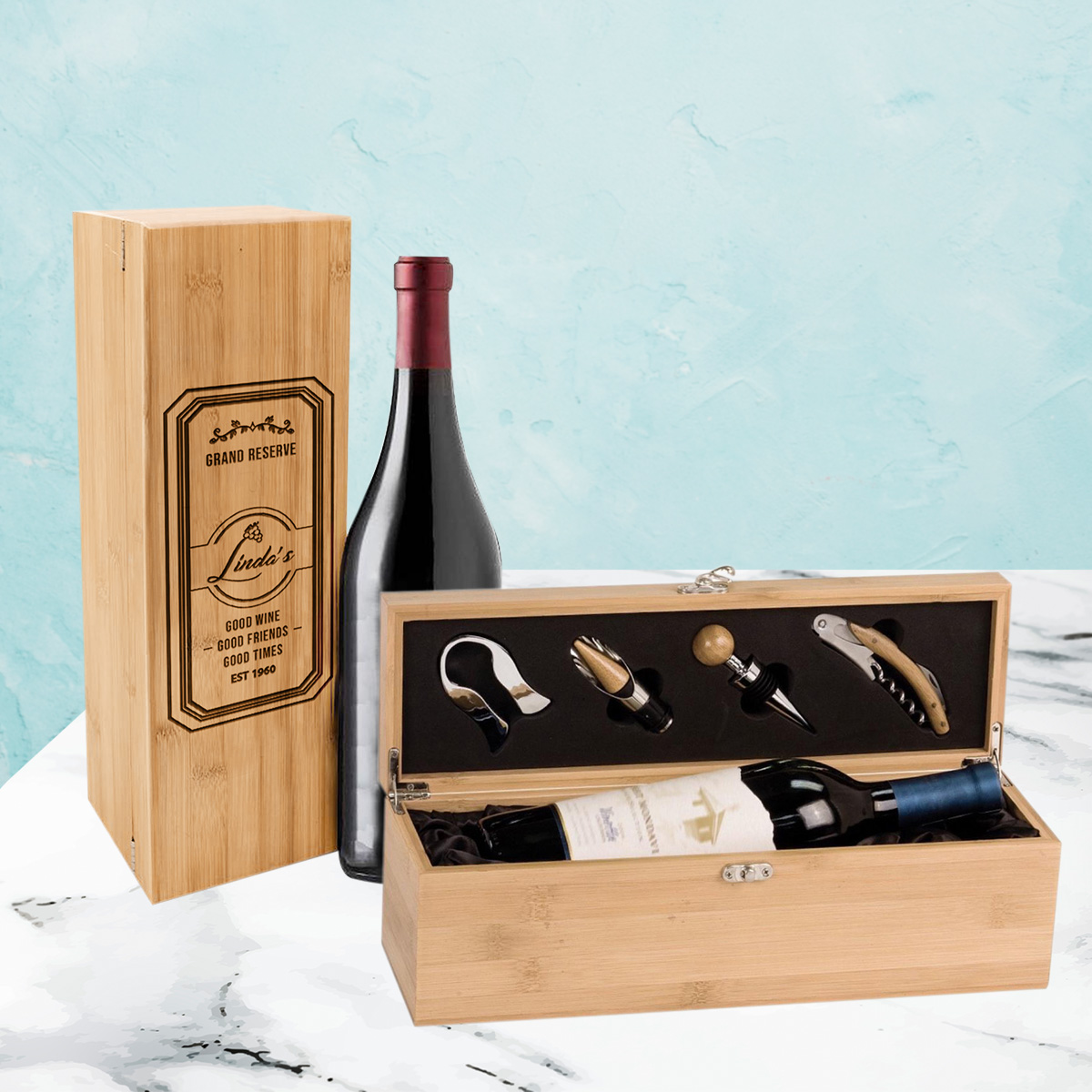 Opening a bottle of wine is a new discovery, a new experience filled with amazing flavors and delicious aromas! This Personalized Bamboo Wine Box is the perfect way to complete that experience. Take your favorite bottle of wine on the go. Perfect for a night at a friend’s house or a picnic. Add a custom laser engraving to make this a truly special gift that will astonish your loved one or any wine lover!