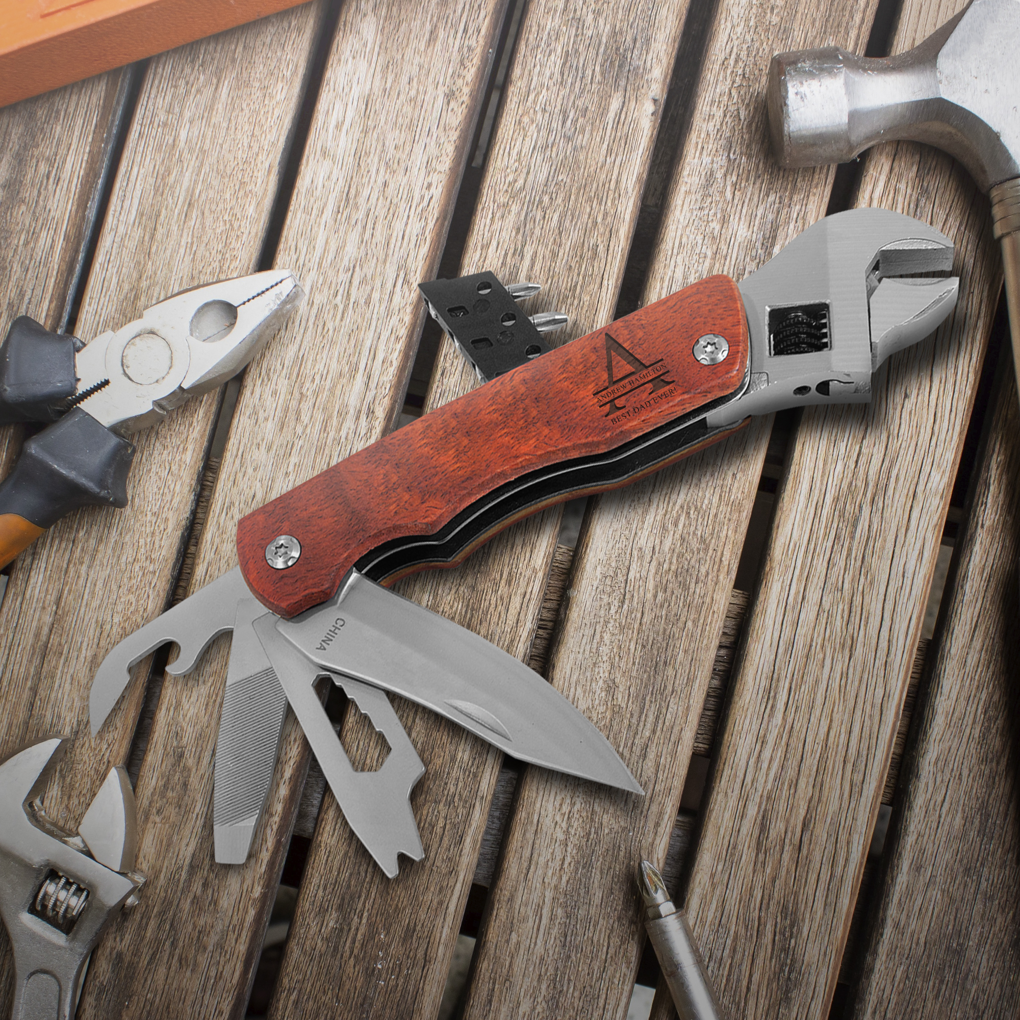 Personalized Wrench Multi-Tool with Wood Handle
