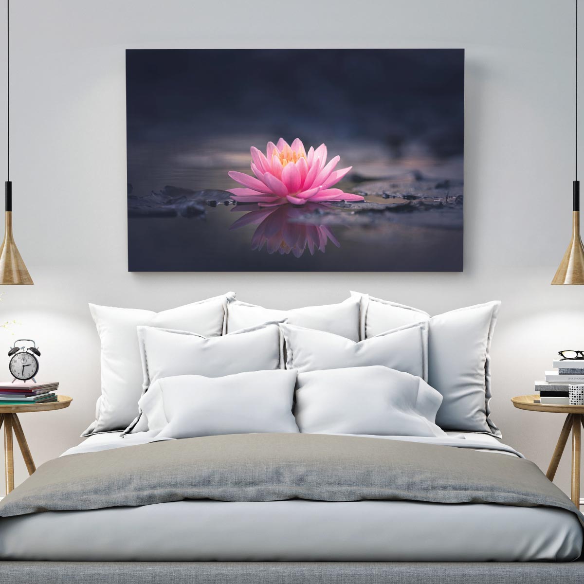 Complement any room with this acrylic print of a pink lotus flower on a dark fog background